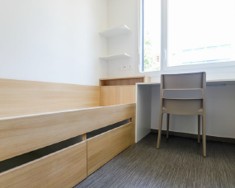 Réhabilitation lourde en conception-réalisation, avec extension de la structure complète des façades, du bâtiment C de la résidence Jussieu, composé de 144 chambres étudiantes.