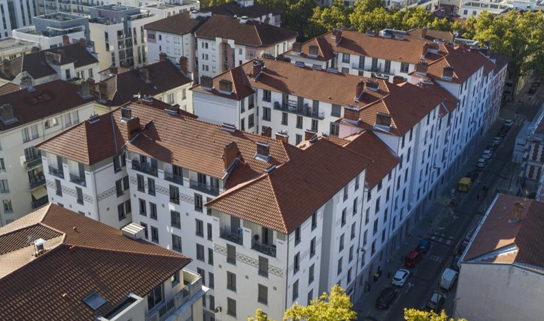 Les travaux de réhabilitation portent sur l’intégralité de l’enveloppe du bâti, avec un changement des menuiseries extérieures, l’isolation des façades et des toitures.